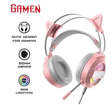 Gamen Headphone Gaming Cat Ear Gh1100 Pink Led Rgb Lighting Original